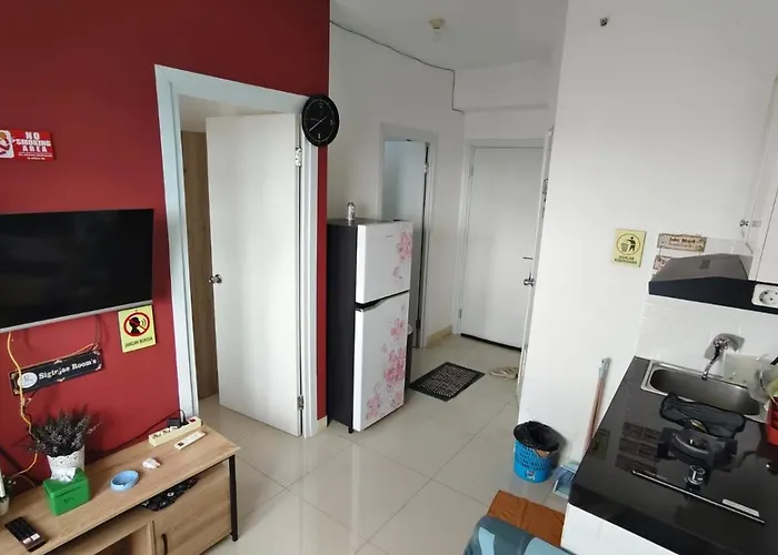 ジャカルタでの休暇を楽しむには、スロパティ公園から4.3kmで、Green Pramuka Square数歩の距離の寝室1室のDewroom ジャカルタアパートがあります。 顧客の余暇を多様化するために、プールもあります。
